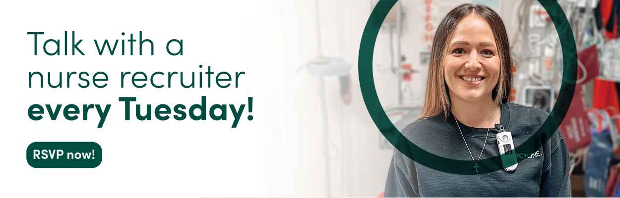 Join the virtual chat from any device on the day of the event. During your one-on-one chat, you’ll have the opportunity to ask questions and share your experience with a MercyOne recruiter. You will not be on camera.